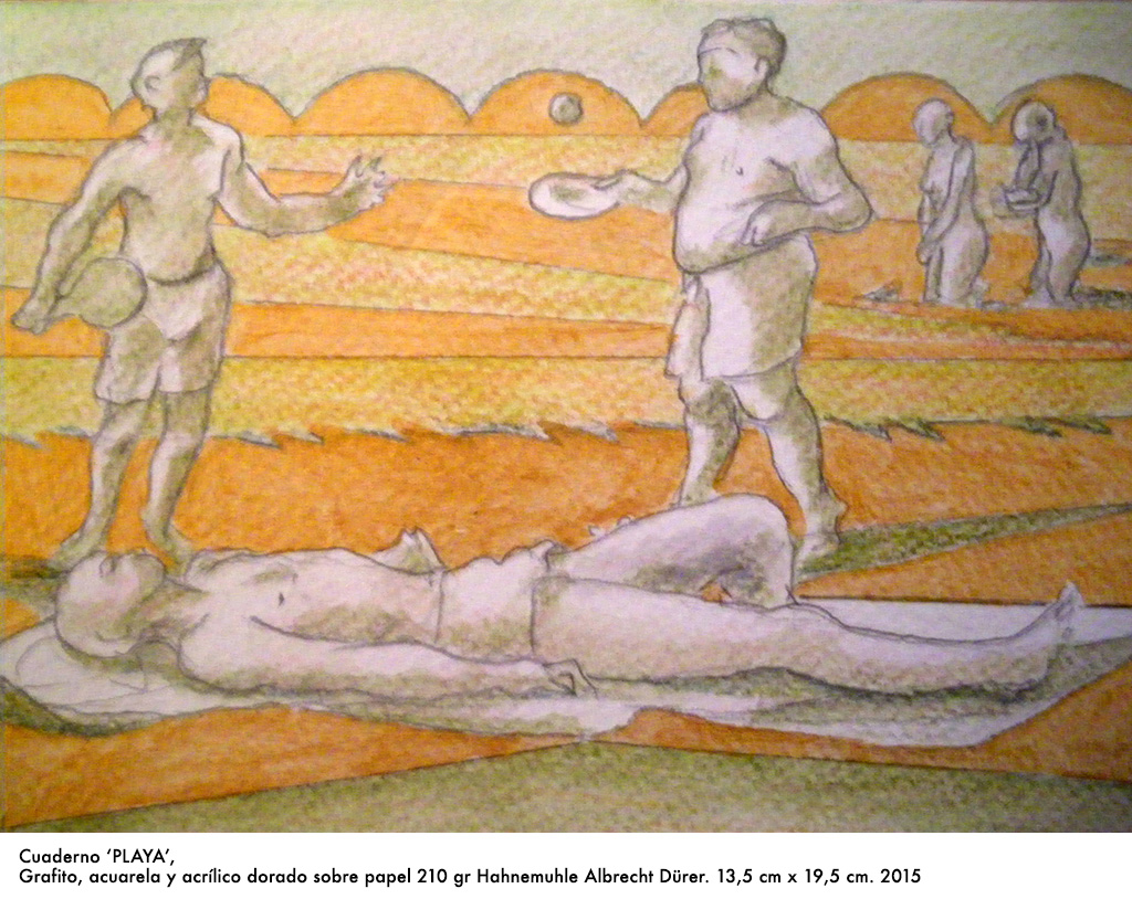 Grafito, acuarela y acrílico dorado sobre papel 210 gr Hahnemuhle Albrecht Dürer. 13,5 cm x 19,5 cm. 2015